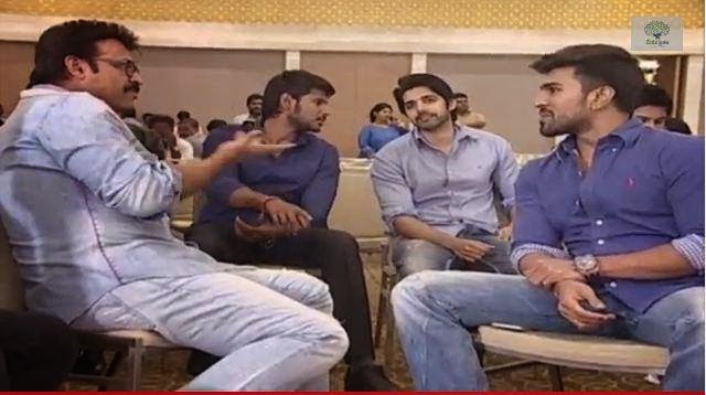 The Mega Hero was seen chatting with Venkatesh and Manchu Manoj for most of the time. He just grabbed the attention of his counterparts and the lensmen with his new avatar.