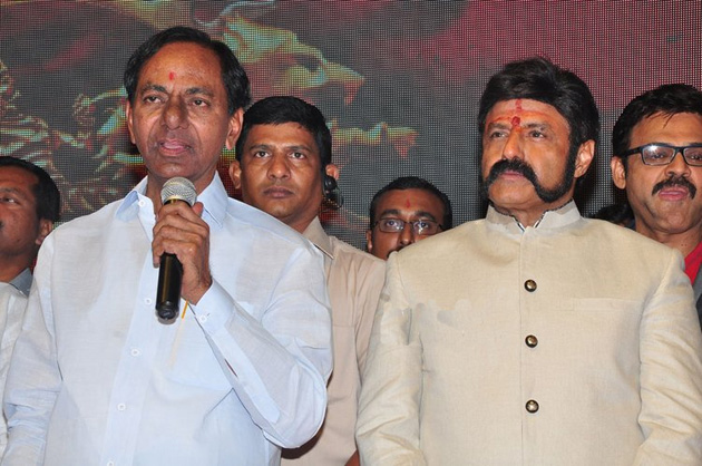KCR: "I came here as NTR's fan to offer my blessing to Balakrishna's landmark movie. A biopic of Gautamiputra Satakarni is a great attempt. Its a story, people of every region should be aware of. Balayya deserves appreciation for taking up the challenge to make such a movie on a grand scale. This film will run for 200 days".